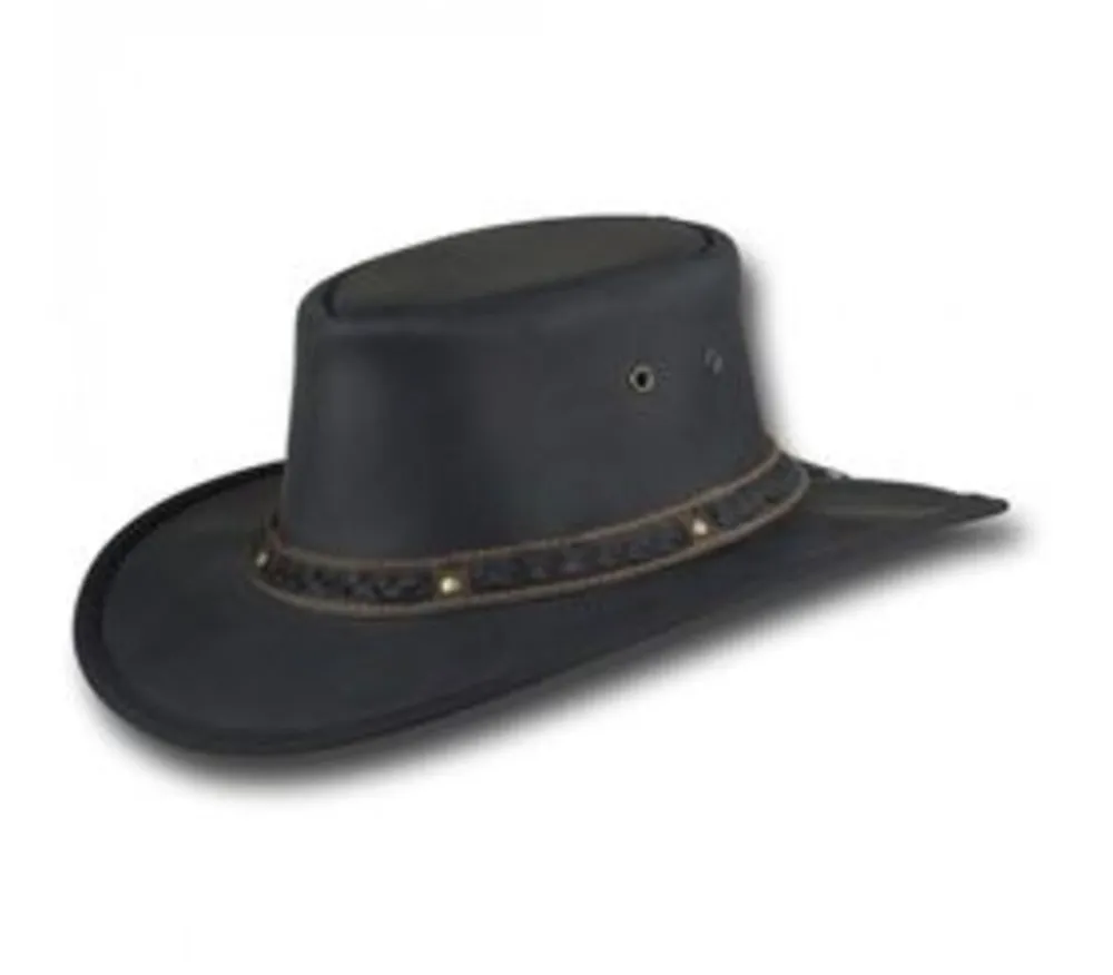 De Squashy Bronco Cooper van Barmah is gemaakt van echt runderleer. Zowel geolied als gewaxt, waardoor het leer zeer goed weerbestendig is. De hoed is voorzien van een elastische band aan de binnenzijde die transpiratie tegenhoudt.