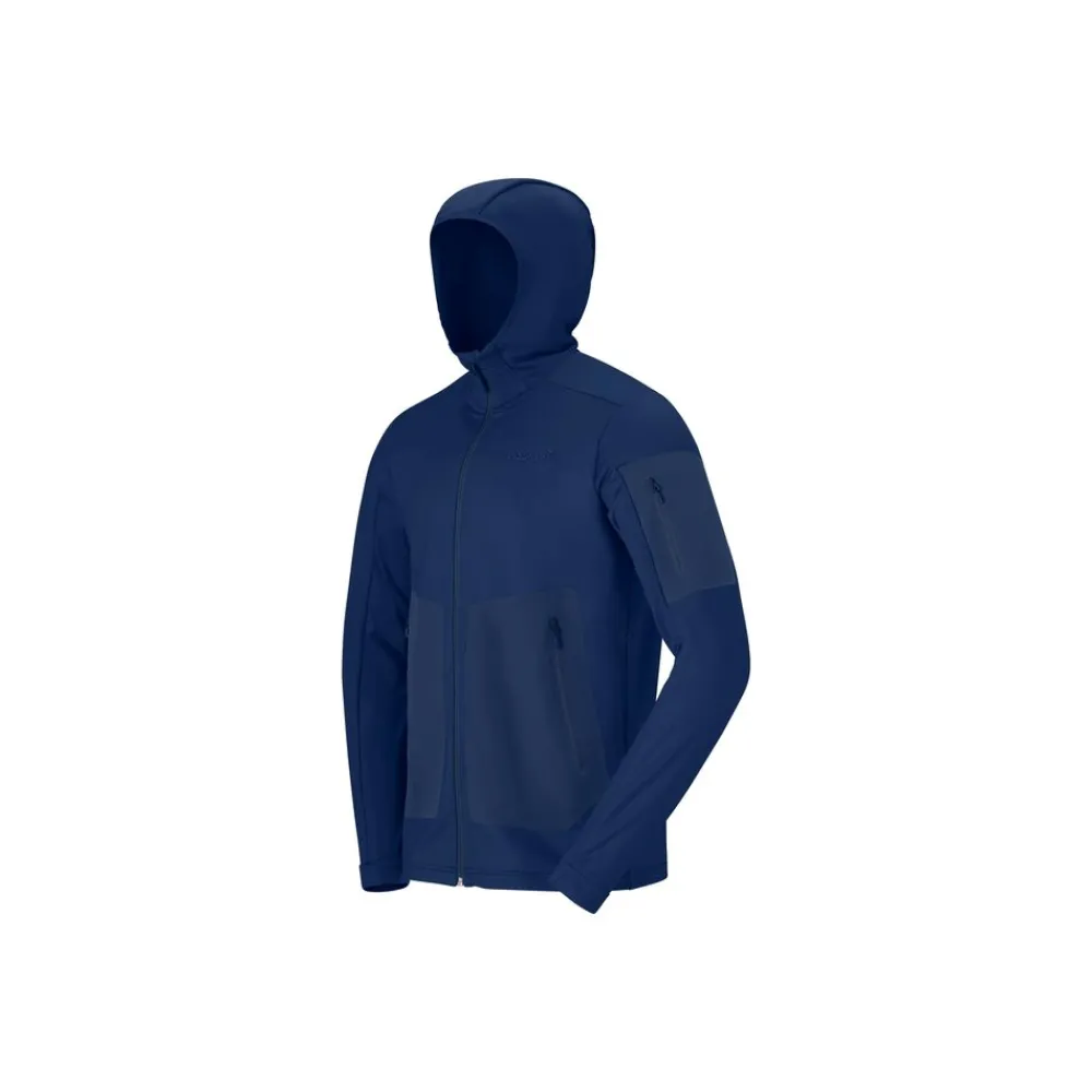 Belangrijkste kenmerken zijn: Een capuchon die geschikt is voor een beanie, elastische biezen rond het gezicht, een linkerarmzak met rits en twee handzakken.