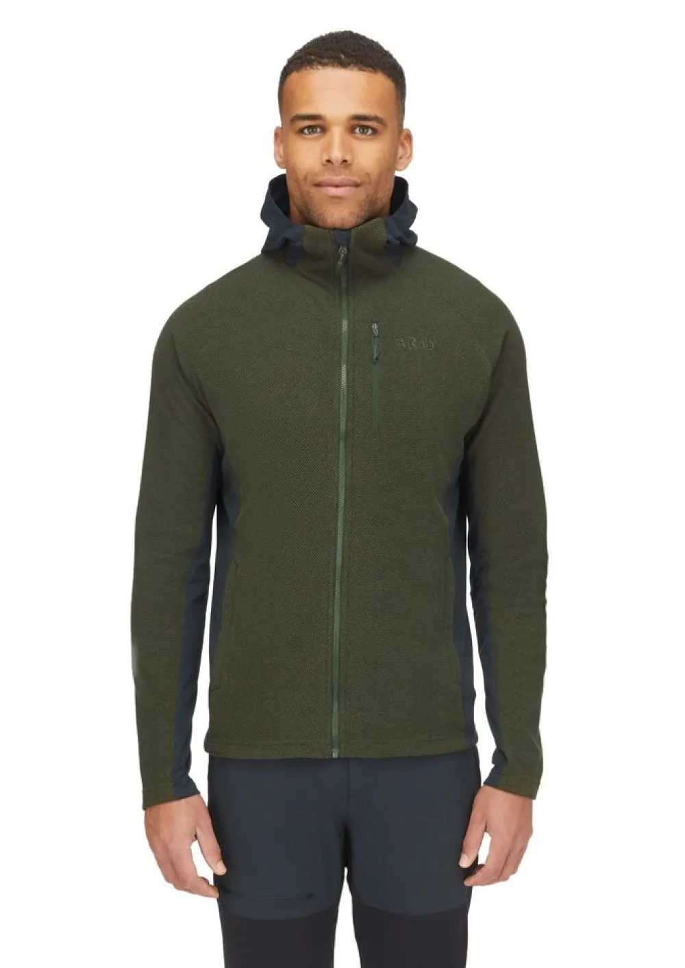 De Capacitor Hoody van RAB is gemaakt van volledig gerecycled polyester, de geborstelde fleece heeft aan de buitenzijde een gebreid uiterlijk. Deze fleece biedt de optimale balans tussen warmte en ademend vermogen en is uitermate geschikt voor diverse bergsport disciplines. De hoody is voorzien van iets lichtere Thermic ™ stretch fleece panelen aan de zijkanten, mouwen en in de capuchon.