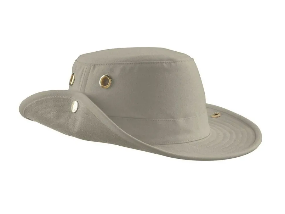 De T3 Cotton Duck van Tilley is een klassieker, waarvan de oorsprong in het leger ligt. De drukknopen aan beide zijkanten dienen voor het omhoog vastzetten van de rand. Dit levert een beter zicht op, maar zorgt ook voor meer stabiliteit bij wind.
