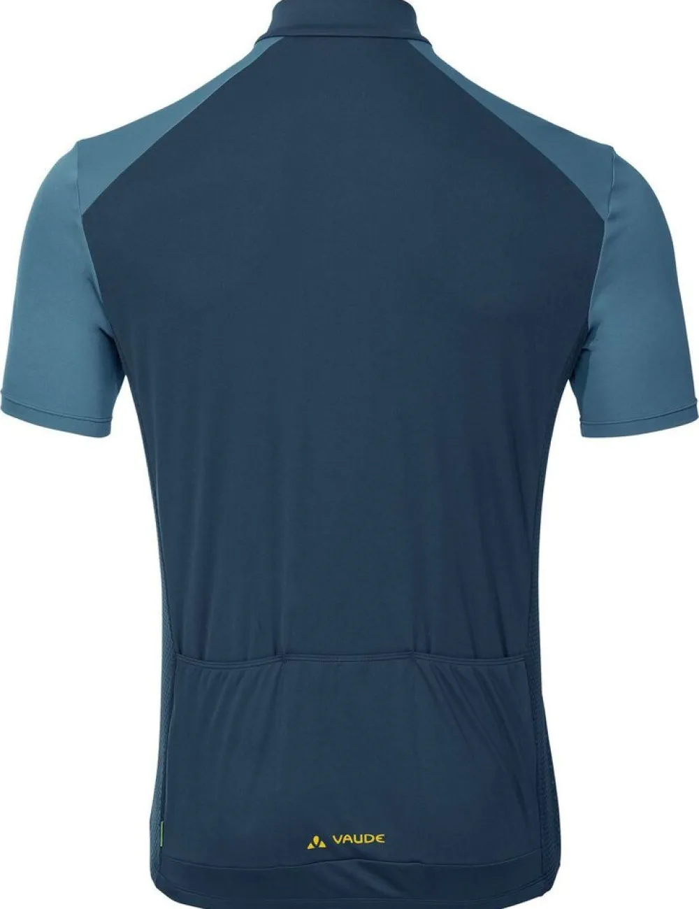 Zeer comfortabel fietsshirt voor middelzware pleziertochten! Het shirt met elastische uiteinden zit losjes op de heupen, knelt niet af en is daardoor geschikt voor elk type wielrennen. Het elastische, ademende en sneldrogende materiaal van gerecycled polyester wordt voor optimale ventilatie aan de zijkanten met een luchtig mesh gecombineerd. 2 open, voor goede toegang ietwat schuin geplaatste zakken op de rug en een korte opstaande kraag maken dit veelzijdige multi-use fietsshirt compleet. Gecombineerd met de Matera Tights staat niets een ontspannende dag op de fiets meer in de weg. Het VAUDE Green Shape-label staat voor een milieuvriendelijk, functioneel product uit duurzame en bluesign®-gecertificeerde materialen.