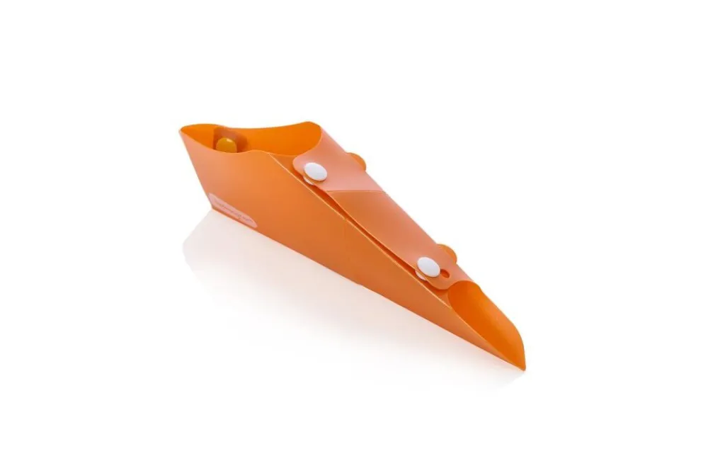 – Verandert in seconden van een plat, zakformaat in een zijtrechter