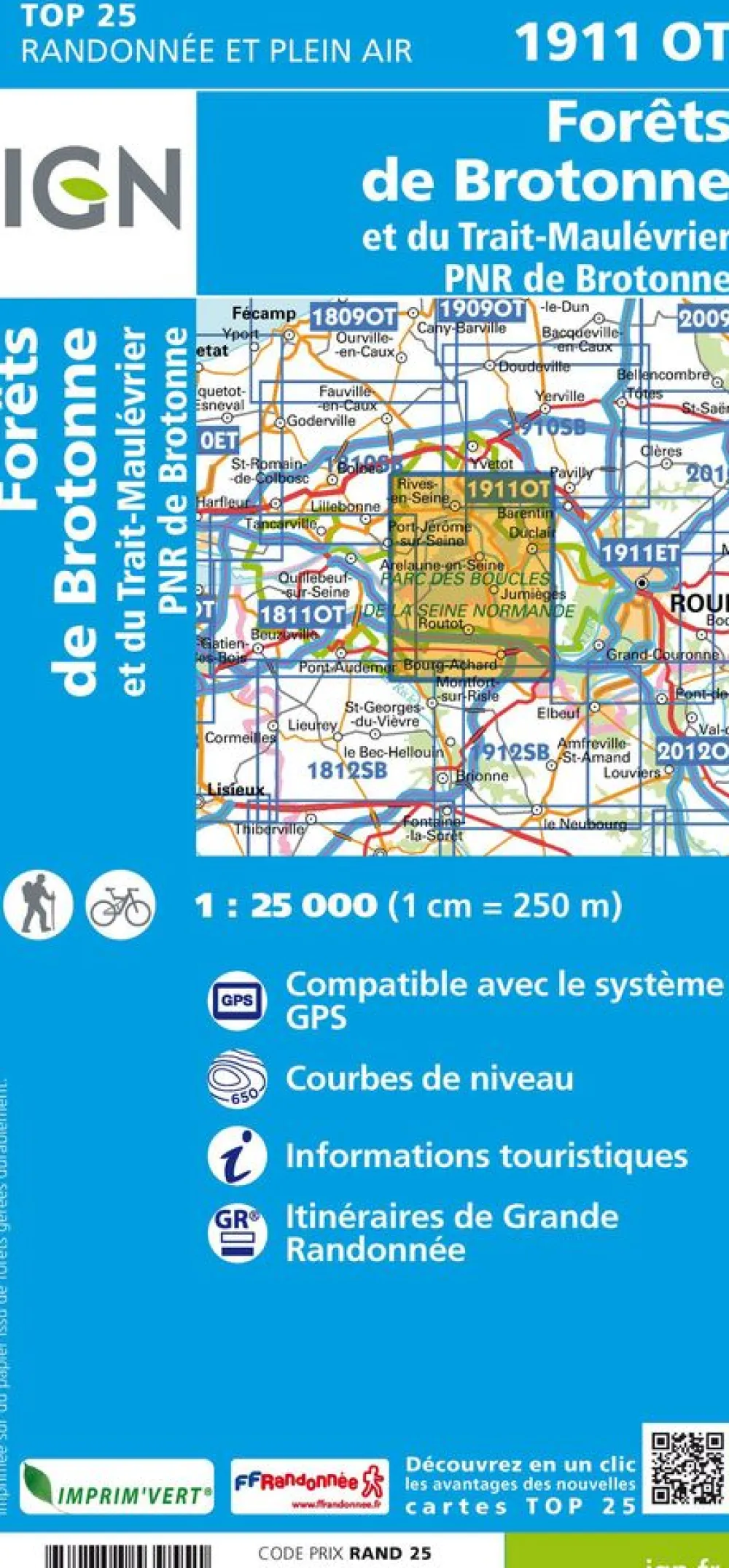 De TOP 25 kaarten (kaart nummers die eindigen op “T”) hebben betrekking op gebieden van bijzonder toeristisch belang zoals de Alpen, de Pyreneeën,De Cevennes, de Vogezen, de Provence, en de Atlantische en Middellandse zeekusten. De kaarten hebben een opdruk en benadrukken zo de lokale wandelpaden, lange afstand GR routes en, in voorkomend geval, ski routes. Andere toeristische informatie omvat campings, paardensport of kanocentra, hutten, berghutten, etc. Elke “TOP 25” kaart bedekt een gebied van ongeveer 28 x 21 km.