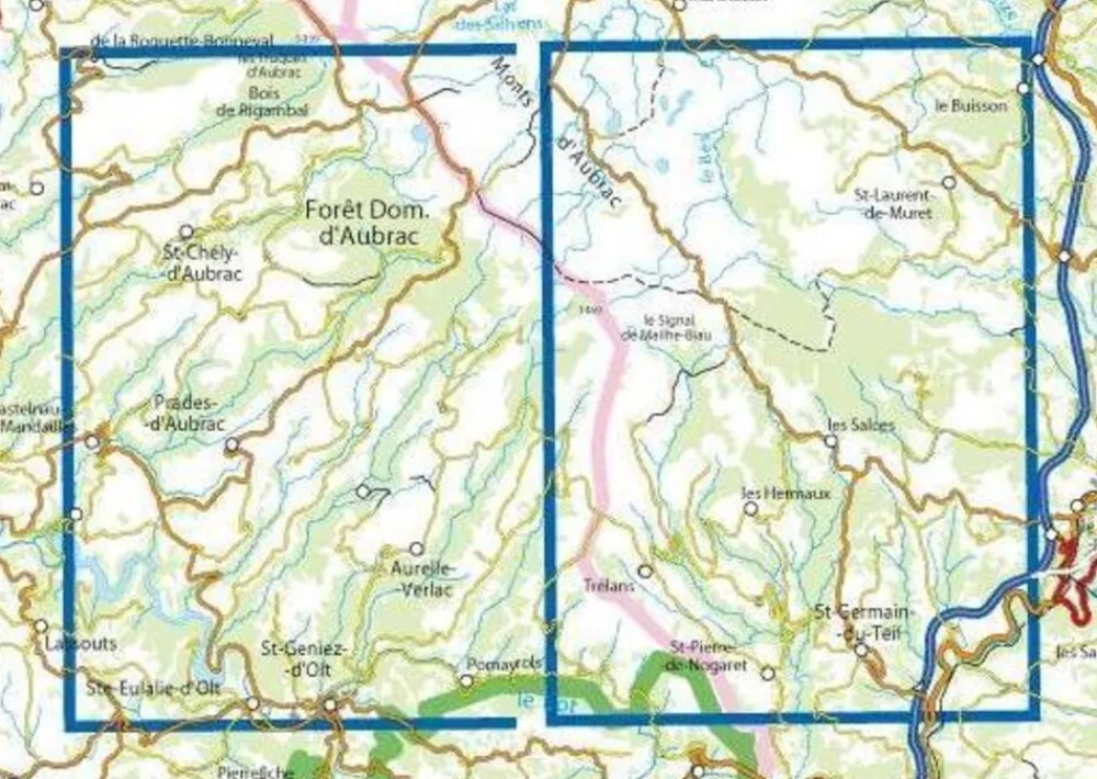 Communes couvertes : Sainte-Eulalie d’Olt, Prades-d’Massif de l’Aubrac, Saint-Laurent-d’Olt, Saint-Pierre-de-Nogaret, Saint-Germain-du-Teil, Pomayrols, Les Hermaux, La Capelle-Bonance, Trélans, Bourgs sur Colagne, Saint-Laurent-de-Muret, Le Buisson, Les Salces, Pierrefiche, Castelnau-de-Mandailles, Banassac