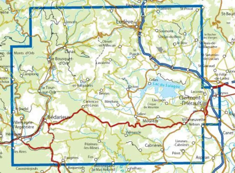 Communes couvertes : Lodeve, Bedarieux, Lac de Salagou, Saint-Privat, Saint-Saturnin-de-Lucian, Fozières, Soumont, Lieuran-CaParc naturel régional de Brières, CaParc naturel régional de Brières, Pézènes-les-Mines, Mourèze, Saint-Guiraud, Vailhan, Valmascle, Salasc, Mérifons, Dio-et-Valquières, Octon, Brenas, Le Bosc, Faugères, Villemagne-l’Argentiè