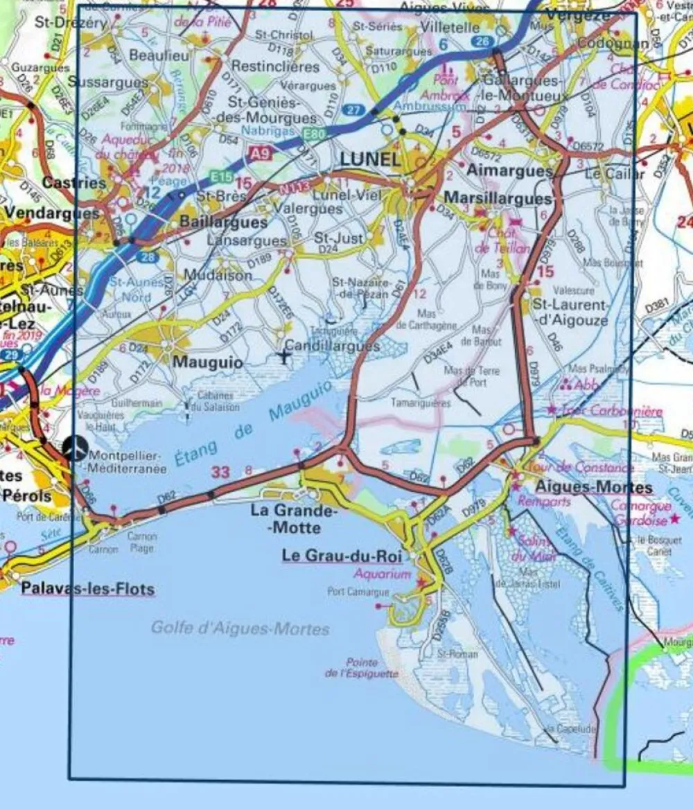 Communes couvertes : Aigues-Mortes, la Grande-Motte, Entre-Vignes, Castries, le Cailar, Saint-Laurent-d’Aigouze, Lansargues, Villetelle, Lunel, Saint-Just, Saint-Drézéry, Codognan, Baillargues, Saint-Sériès, Saturargues, Candillargues, Saint-Nazaire-de-Pézan, Aigues-Vives, Beaulieu, Gallargues-le-Mont