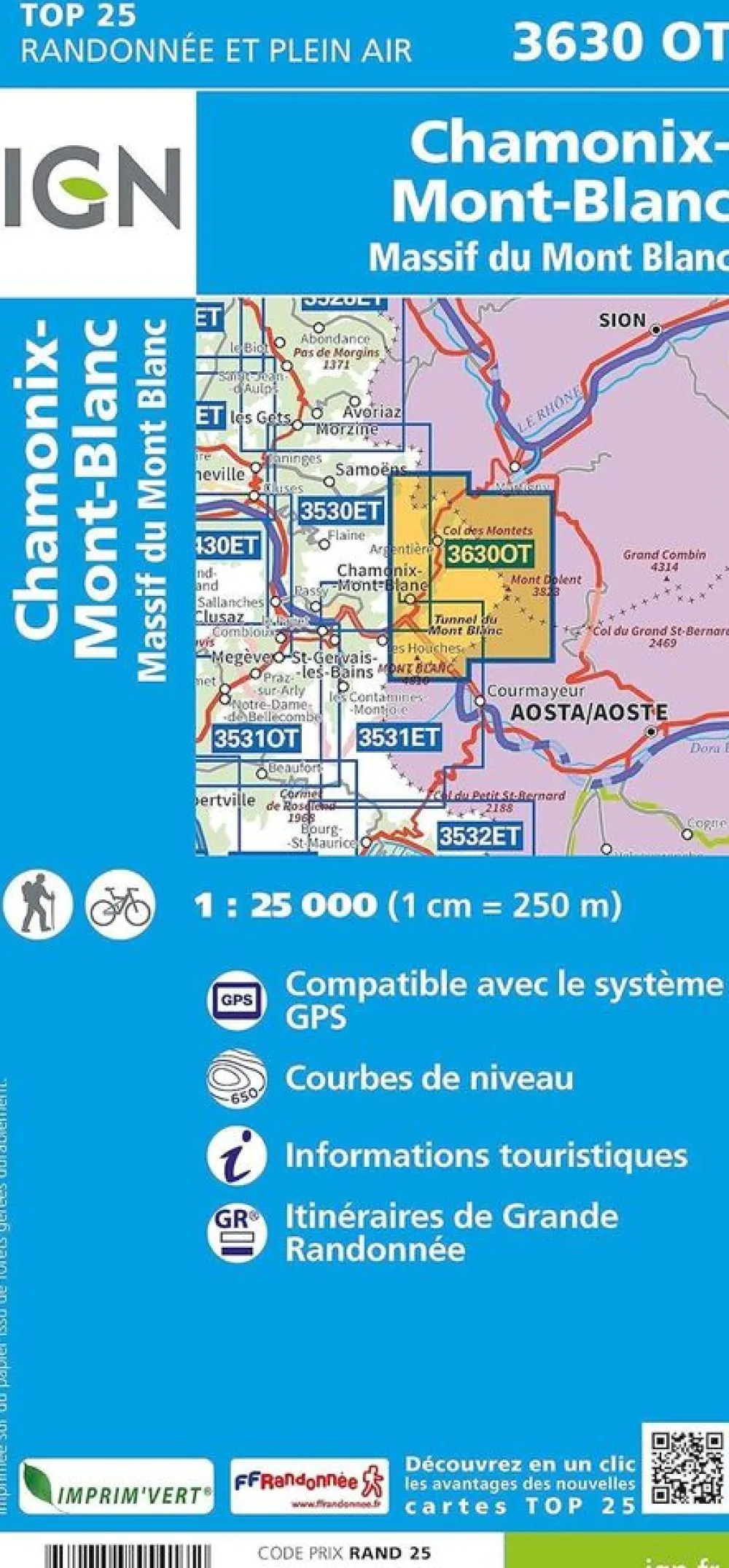 L’indispensable carte de randonnée IGN 3630OT. D’une très grande précision elle contient tous les détails existant sur le terrain : voies de communication et sentiers, constructions y compris les hangars, bois, arbres isolés, rivières, sources, sans oublier la représentation du relief par des courbes de niveau. Les sentiers balisés et les informations touristiques sont également représentés.