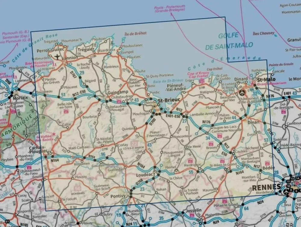 Ideale kaart voor fietsen en autotochten vanuit een vaste plaats als een camping of huisje. Zelfs de kleinste wegen staan ingetekend en geven met symbolen toeristische informatie. De belangrijkste doorgaande GR’s staan ook ingetekend. Nieuw zijn de VELO Voie Vertes, lokale fietspaden die meestal gemarkeerd zijn; ook deze zijn ingetekend. Het omvat fietsroutes in samenwerking met de vereniging AF3V – VéloRoutes en Voies Vertes.