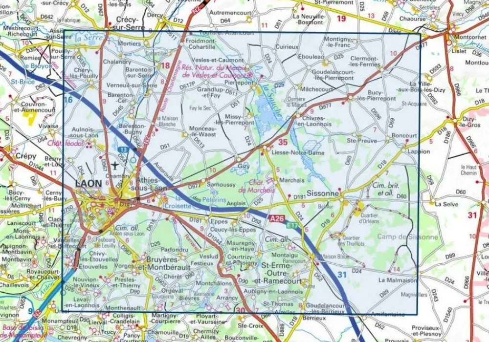 Uitstekende, topografische wandelkaart 2710SB Laon – Sissonne