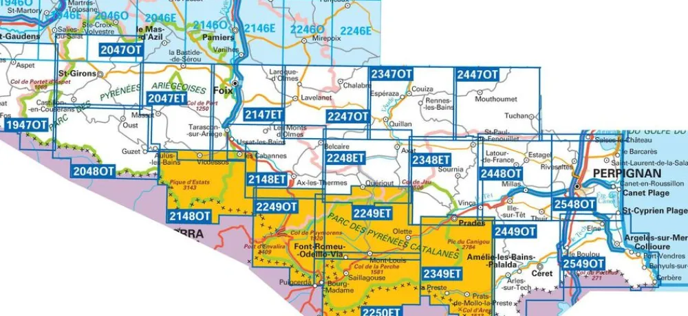 Uitstekende topografische wandelkaart nummer 2448ot Thuir, Ille-sur-Têt: ten westen van Perpignan, aan de voet van de Pyreneeën.
