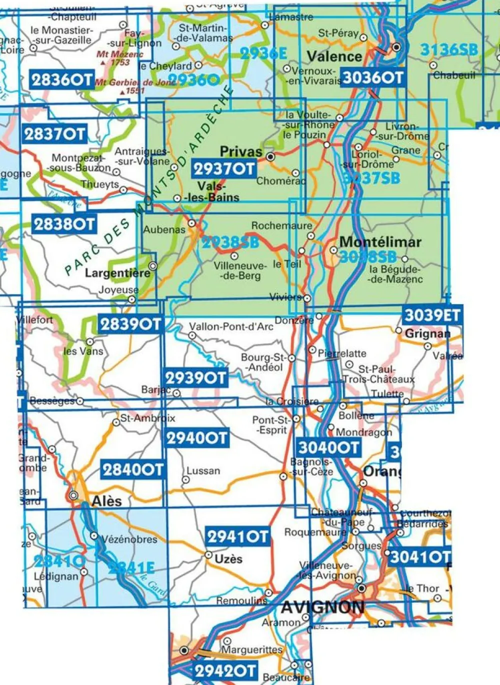 Uitstekende, topografische wandelkaart nummer 2840ot Alès en omgeving.