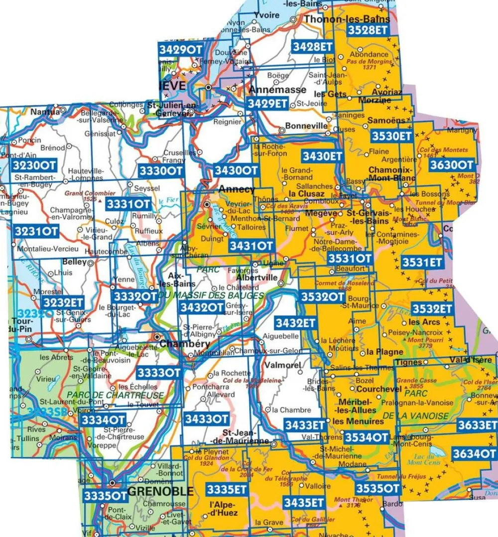 Uitstekende, topografische wandelkaart nummer 3328et Thonon-les-Bains: het zuiden van de regio Chartreuse, ten noorden van Grenoble.