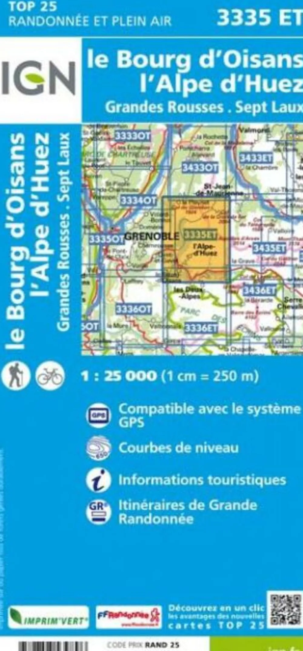 Uitstekende, topografische wandelkaart nummer 3335et L’Alpe d’Huez, Le Bourg d’Oisans: