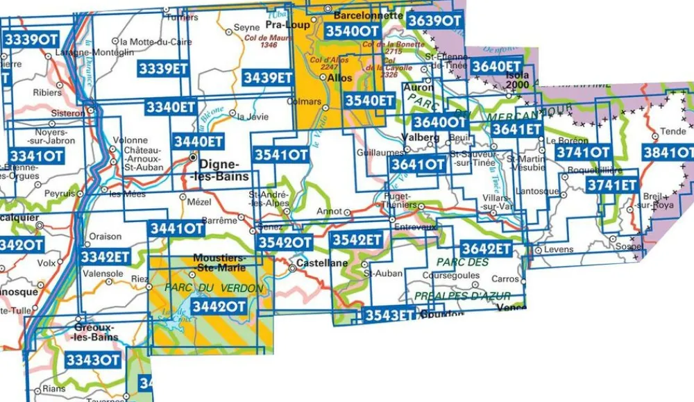 Uitstekende topografische wandelkaart nummer 3641ot Moyen Var: