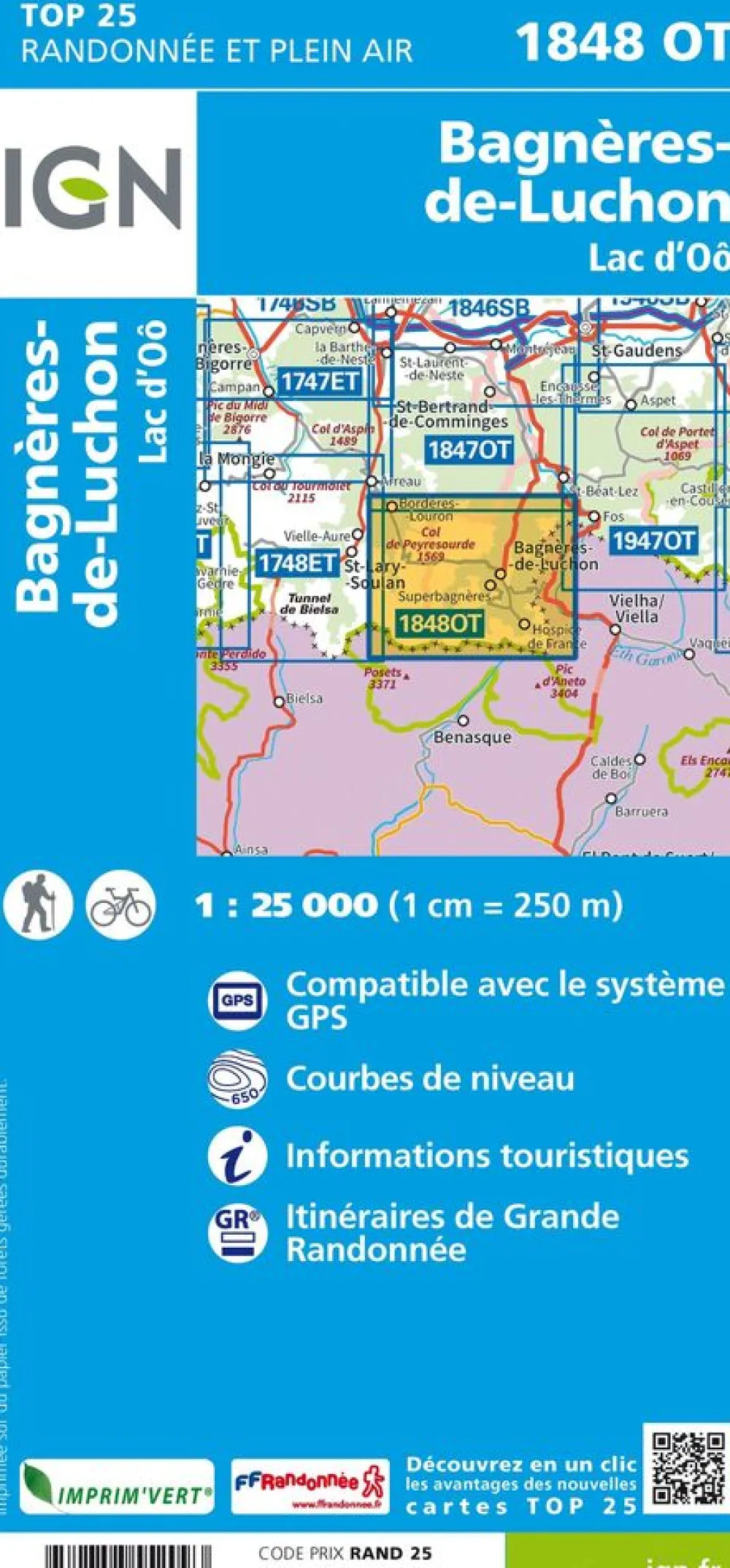 De TOP 25 kaarten (kaart nummers die eindigen op “T”) hebben betrekking op gebieden van bijzonder toeristisch belang zoals de Alpen, de Pyreneeën,De Cevennes, de Vogezen, de Provence, en de Atlantische en Middellandse zeekusten. De kaarten hebben een opdruk en benadrukken zo de lokale wandelpaden, lange afstand GR routes en, in voorkomend geval, ski routes. Andere toeristische informatie omvat campings, paardensport of kanocentra, hutten, berghutten, etc. Elke “TOP 25” kaart bedekt een gebied van ongeveer 28 x 21 km.