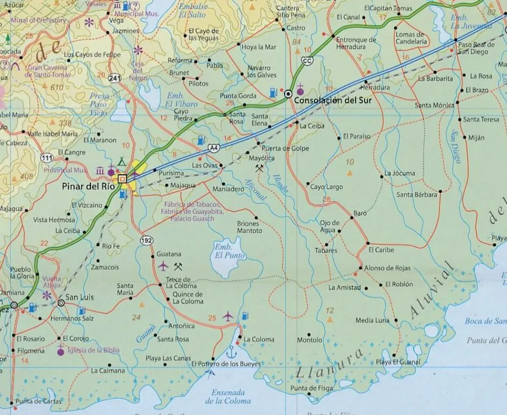 Wegenkaart van het westelijk deel van Cuba: