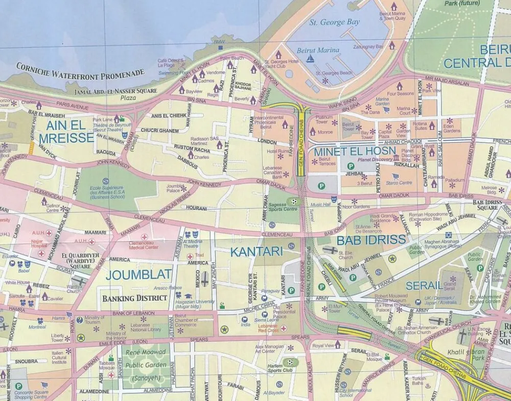 We visited Lebanon in October to ground-truth the information we had placed on the artwork. I’m glad we did, because we were able to ‘fine-tune’ some of the road classifications and fix some minor errors of spelling and location. We were also able to discover a wealth of touristic information to add to our 3nd edition. Most importantly, we were able to explore fabulous Beirut and add lots of information to our artwork. As a result, we now have a double-sided map, with Lebanon at one scale filling one side, and an excellent map of Beirut filling the other side. To my knowledge this is the only commercially available map of either Lebanon or Beirut outside of Lebanon. We’ve done our best; now it is up to the market to critique it. Printed on paper, double-sided