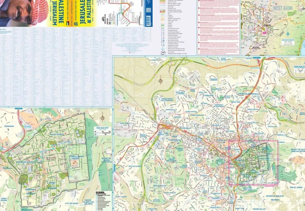 Wegenkaart van Palestina en stadsplattegrond van Jeruzlem: