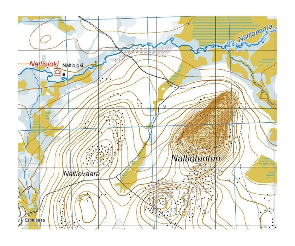 The topographic map is the best choice for such Lapland areas preferred by hikers, fishermen and hunters, for which outdoor maps have not been published and which have required the acquisition of several traditional terrain maps to move in the area.