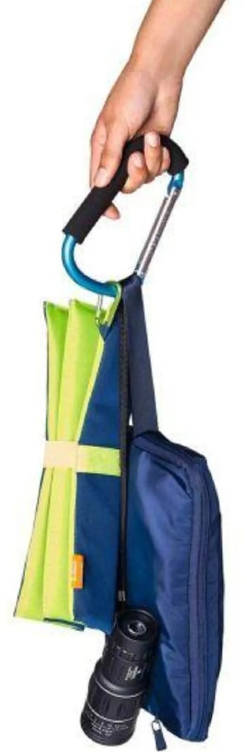 Stevige karabijnhaak van aluminium en EVA (handgreep). Afmeting 9,5x16x2,5 cm. U ontvangt een willekeurige kleur