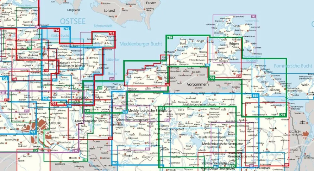 Uitstekende topografische wandelkaart 738 van het eiland Usedom en het eiland Wollin aan de Duitse oostzeekust, op de grens met Polen: met aantal detailkaarten, schaal 1:25.000, in het meegeleverde minigidsje.