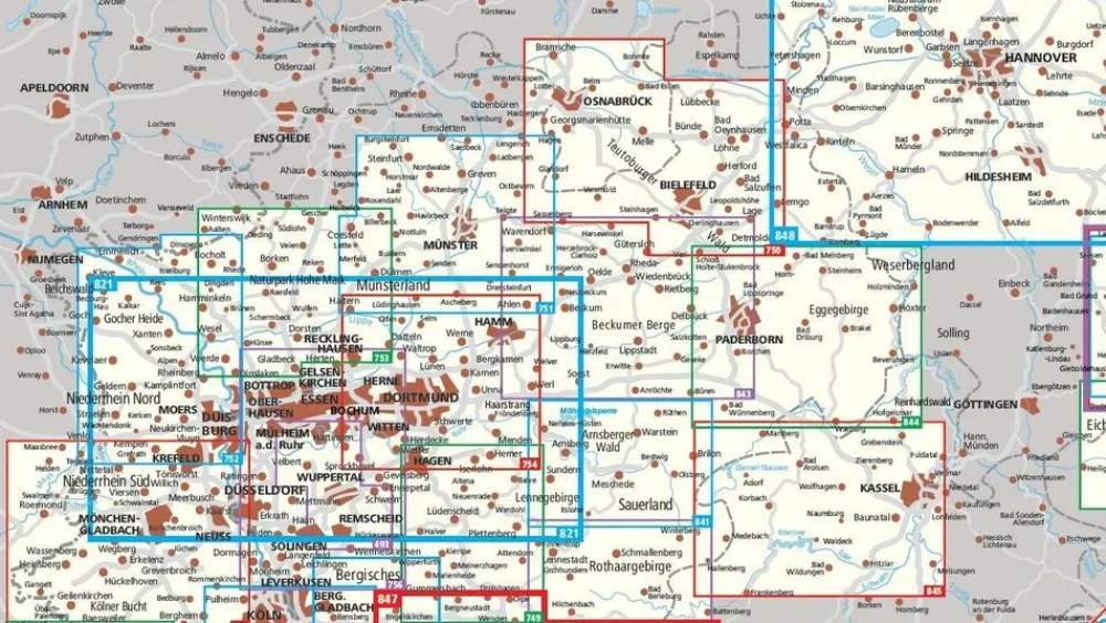 Uitstekende topografische wandelkaart 844 van het zuidelijk deel van het Teutoburger Woud met het Eggegebirge en het Oberwälder Land.