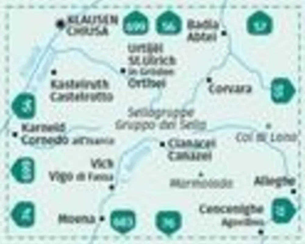 Klausen (Chiusa), Abtei (Badia), Kastelruth (Castelrotto), St. Ulrich (Ortisei), Corvara, Karneid (Cornedo all’Isarco), Canazei/Cianacei, Vigo (Vich), Alleghe, Moena, Cencenighe
