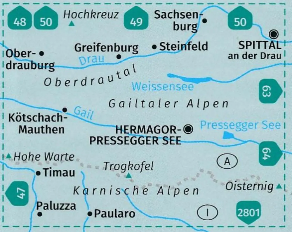 Sachsenburg, Spittal an der Drau, Steinfeld, Greifenburg, Oberdrauburg, Kötschach-Mauthen, Hermagor-Pressegger See, Timau, Paluzza, Paularo