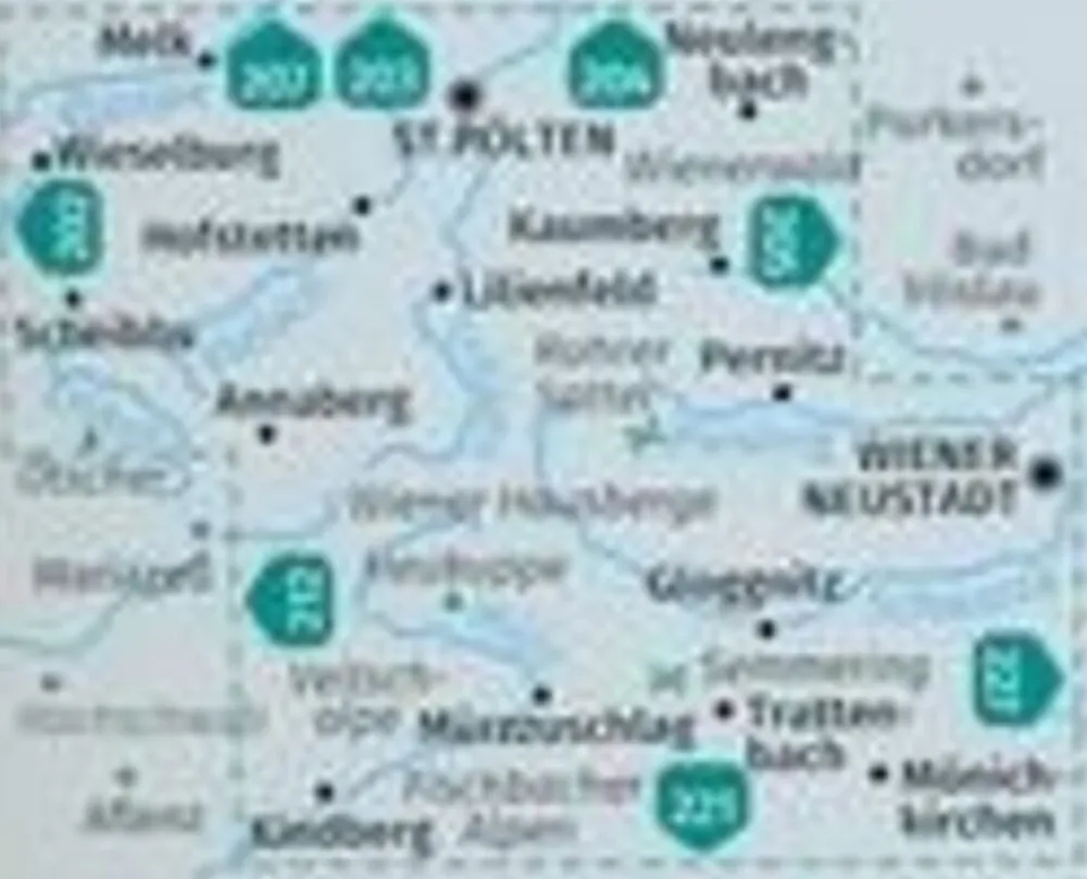 Plaatsen op de kaart: Pielachtal, Traisental, Sankt Pölten, WIner Nuestadt, Annaberg, Gloggnitz.