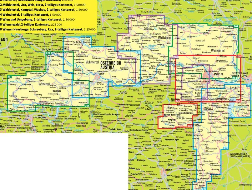 Set van twee uitstekende, topografische wandelkaarten 210 Wiener Hausberge: