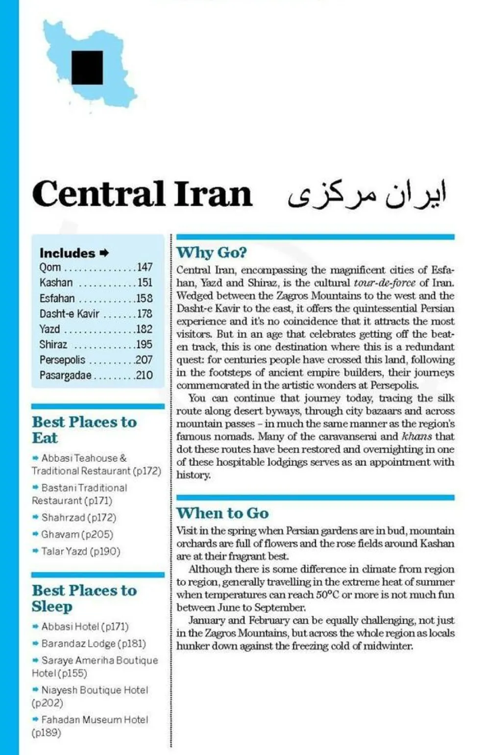 Praktische, Engelstalige reisgids van Iran, boordevol informatie over accommodatie, bezienswaardigheden, wandelingen, eten en drinken, uitgaan, openbaar vervoer. Ideaal voor de individuele reiziger.