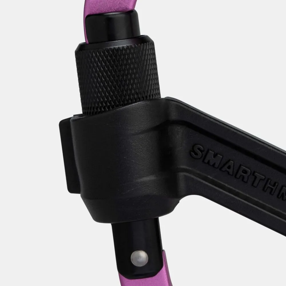 De Smart HMS karabiner is speciaal ontwikkeld voor gebruikt met het Smart 2.0 zekerapparaat. De kunststof klep over de schroefdraad maakt dat de karabiner niet zelf open kan draaien, en dat heel eenvoudig visueel te controleren is of de karabiner dicht zit. Klep dicht = Karabiner dicht. Daarnaast zorgd de klep ervoor dat de karabiner vrijwel nooit horizontaal belast kan worden.