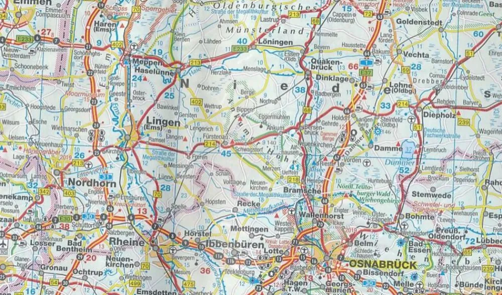 Duidelijke wegenkaart van Marco Polo: alle wegen, zowel de verharde als belangrijke onverharde wegen zijn weergegeven. Mooie toeristisch interessante wegen die de moeite waard zijn, zijn groen gearceerd. Veel toeristische informatie is toegevoegd zoals de nationale parken, campings, kastelen en vliegvelden. Afstanden tussen belangrijke steden en benzinestations staan ook op de kaart. Een plaatsnamenregister ontbreekt niet.