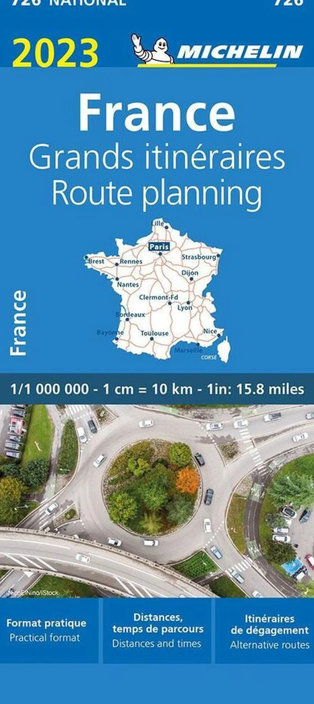 Uitstekende, overzichtelijke wegenkaart van Frankrijk Itineraires: editie 2023.