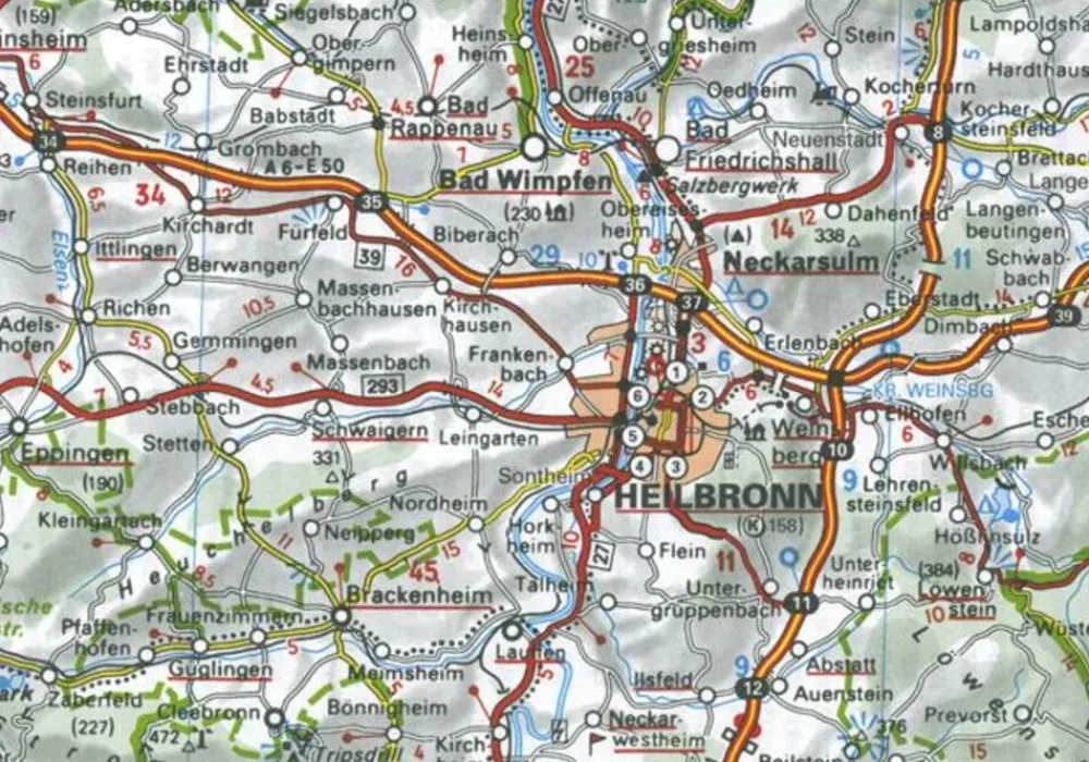 -stadsplattegrond Stuttgart, Karlsruhe, Mannheim en Freiburg