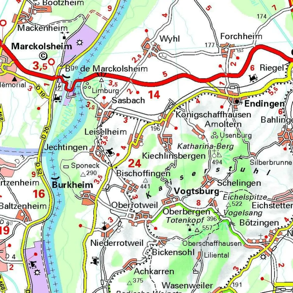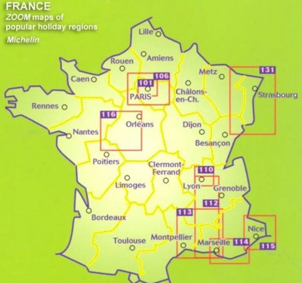 -stadsplattegronden van o.a. COlmar, Freiburg, basel, Straatsburg en Mulhouse