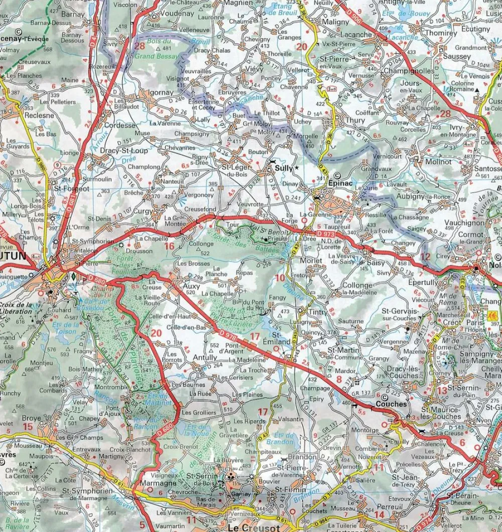 De welbekende Michelin Local serie van Frankrijk. De wegenkaart met schaal van 1:150.000 maakt de kaart ideaal om een fietsroute uit te stippelen.