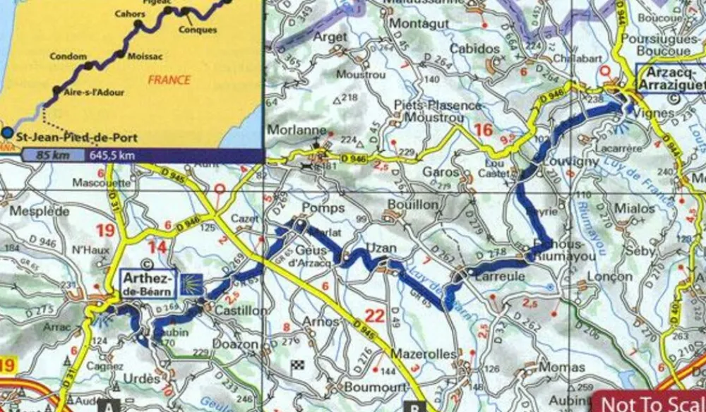 Heel handzaam boekje met de kaarten voor de route naar Santiago de Compostela tussen Le Puy-en-Velay naar St-Jean-Pied-de-Port.
