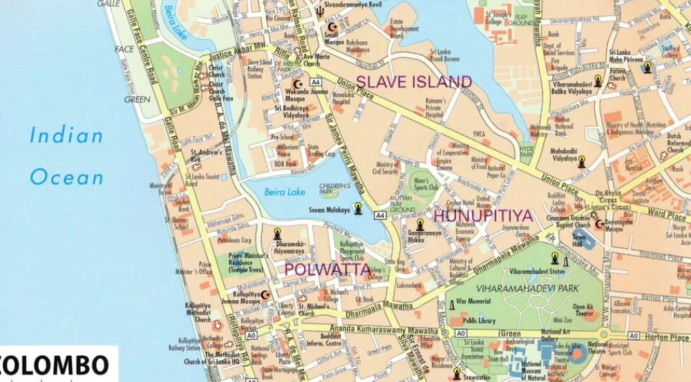 - als inzet plattegrond van het centrum van Colombo en Kandy