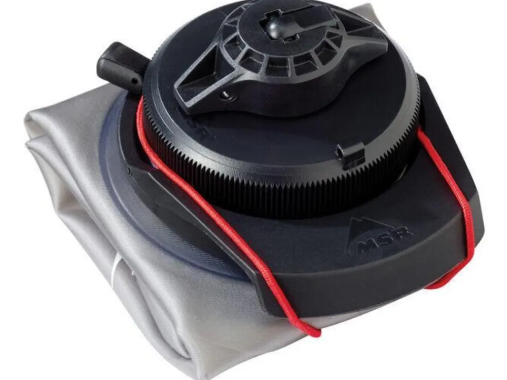 Extra lichte waterzak van MSR. De Dromlite 6 liter weegt slechts 160 gram en is op te vouwen tot het formaat van de dop.