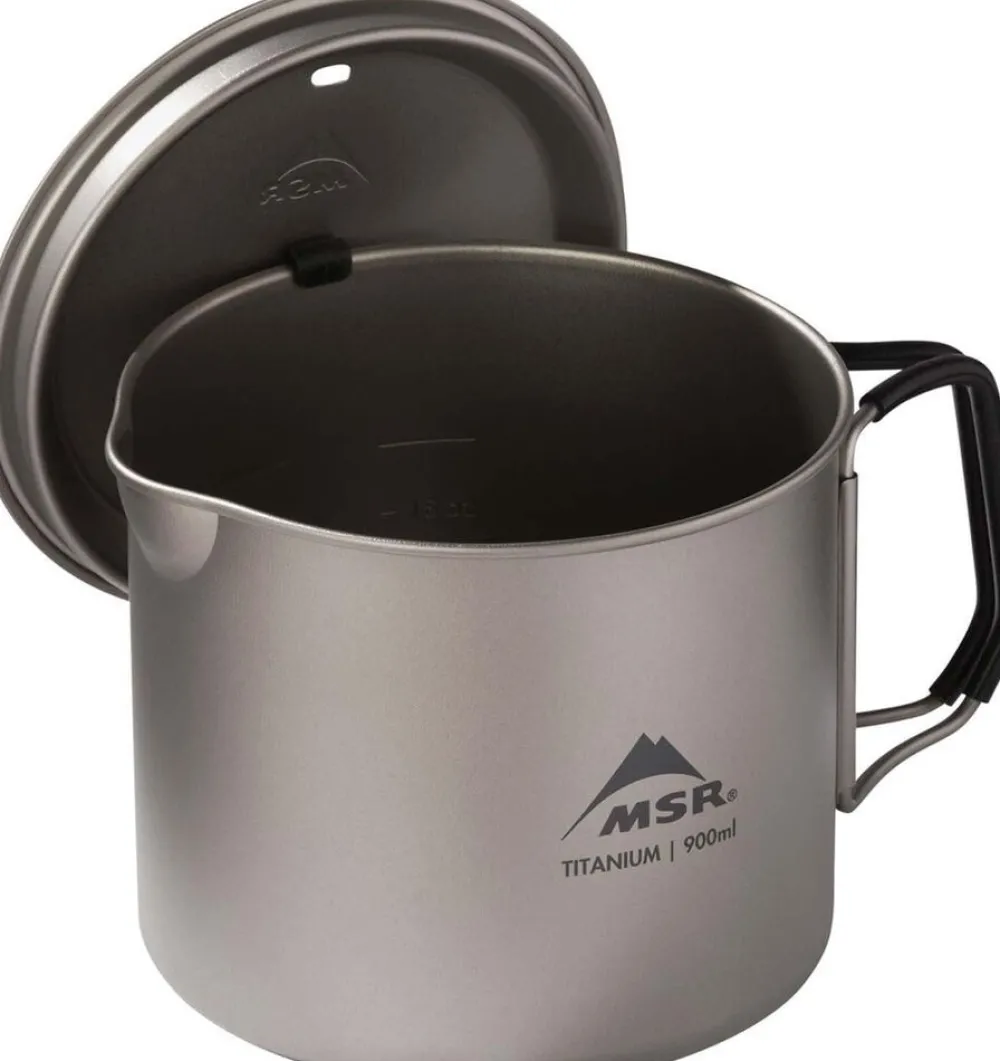 De Titan Kettle 900ml van MSR is een ultralichtgewicht, titanium ketel met deksel. Hij weegt slechts 126 gram en is zeer compact. De MSR ketels kunnen ook in elkaar worden opgeborgen als u behoefte heeft aan meer dan 1 pan.
