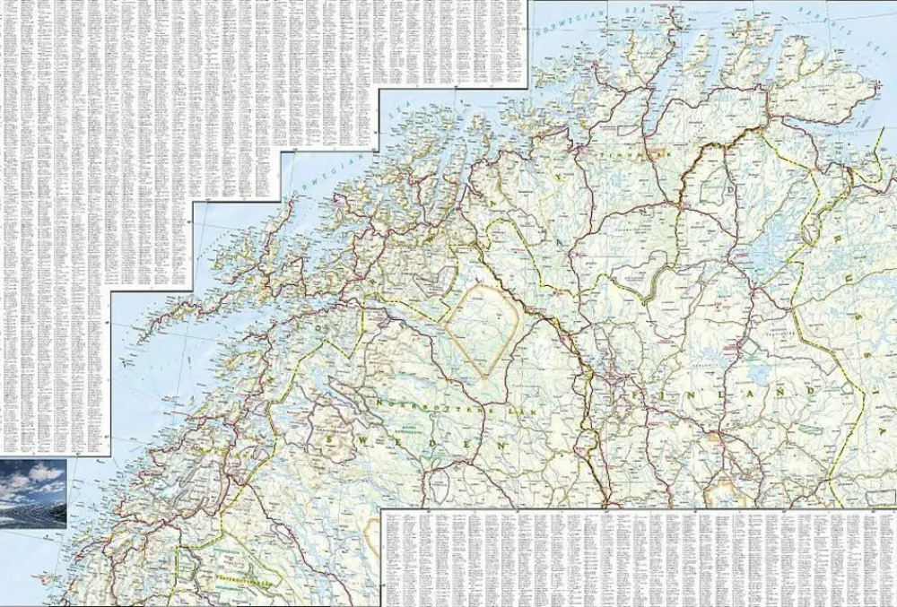 Wegenkaart van Finland en het noordelijk deel (Lapland) van Zweden en Noorwegen.