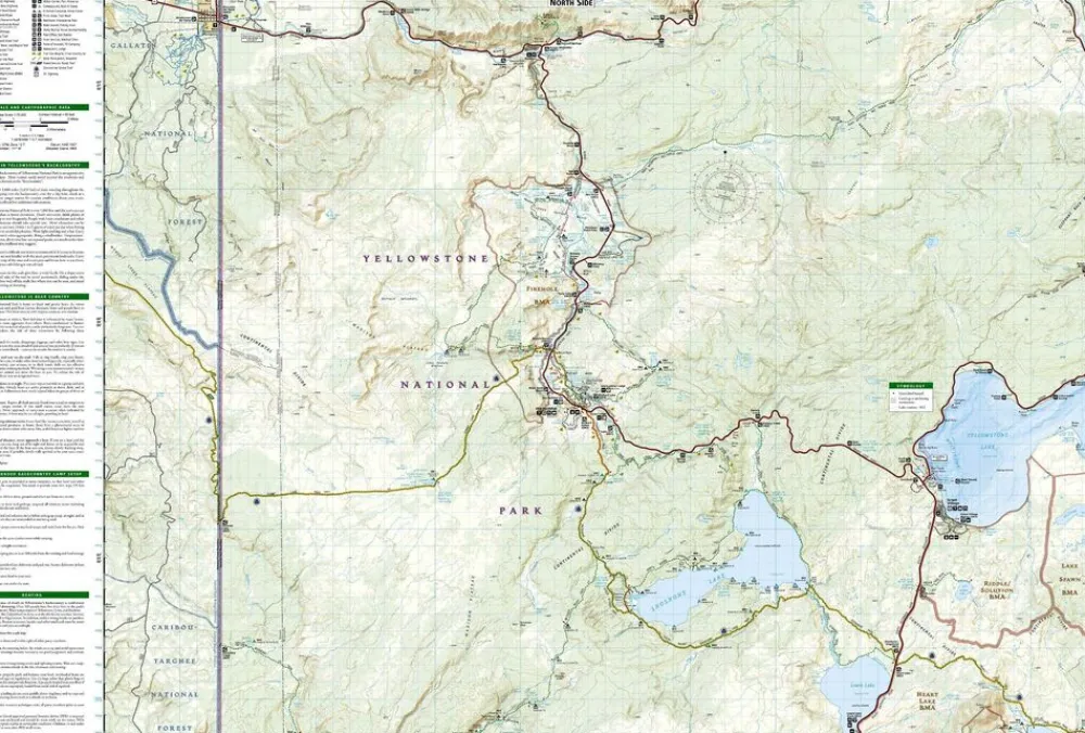 Topografische wandelkaart, scheurbestendig en watervast, van de Old Faithful in het zuidwesten van Nationaal Park Yellowston