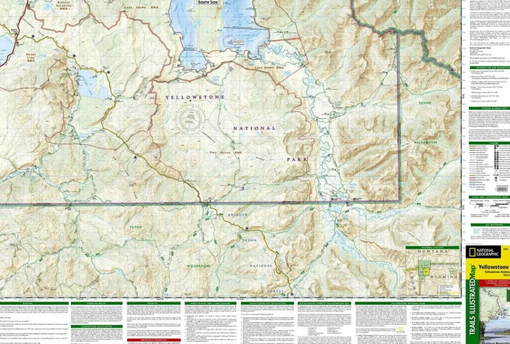 National Geographic’s Trails Illustrated map of the Yellowstone Lake area of Yellowstone National Park is designed to meet the needs of outdoor enthusiasts with unmatched detail of the south-east section of the national park. Expertly researched and created in partnership with local land management agencies, this map features key points of interest including Yellowstone lake shown with contours and bathe metric shading, Lake Village, Grant Village, East Entrance Station, Heart Lake, Bridger-Teton National Forest, Shoshone National Forest, Teton Wilderness, and North Absaroka Wilderness.