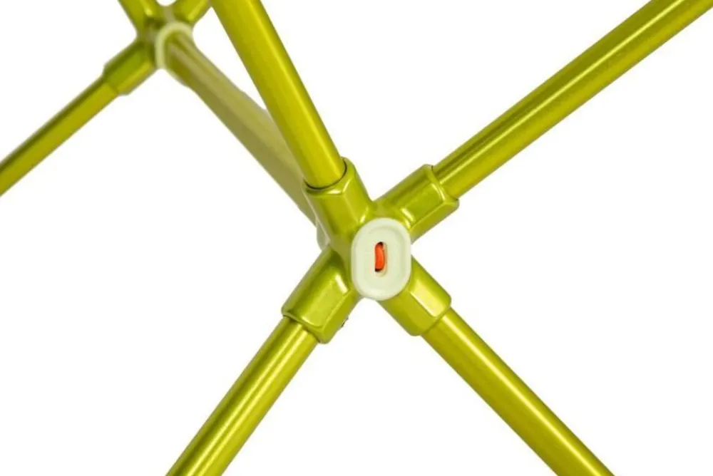 - Framepalen worden met een bevredigende klik verbonden met de lichtgewicht gegoten hoeksteunen.