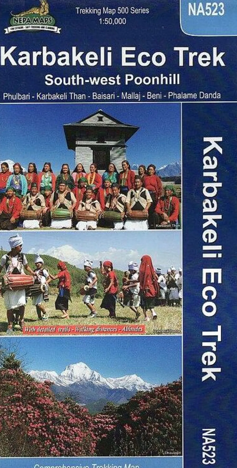 In the Trekking Map 500 series from Nepa Maps this 1:50,000 scale map covers the Karbakeli Eco Trek. Covering Phulbari, Karbakeli Than, Baisari, Mallaj, Beni & Phalame Danda.