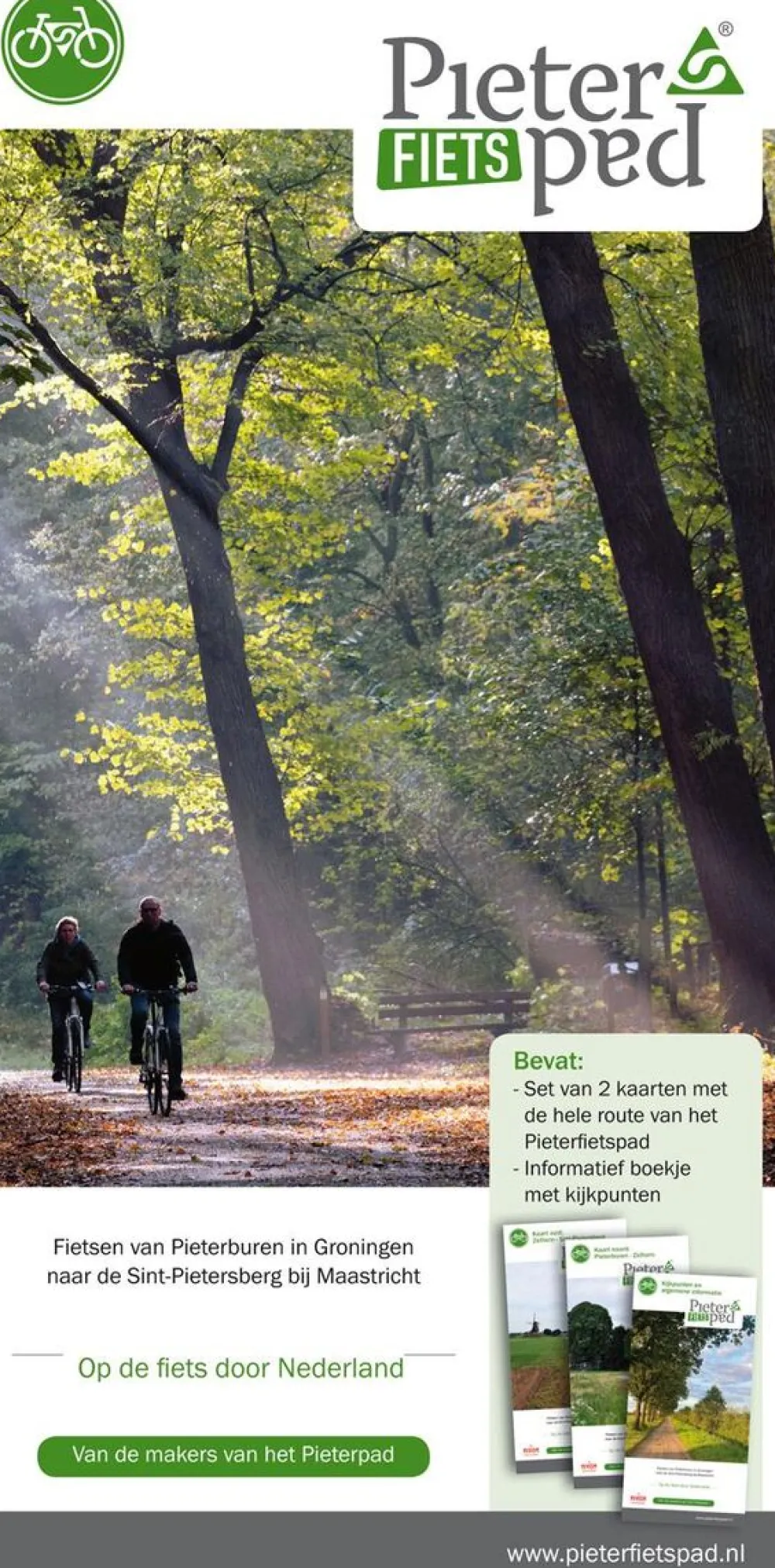 Het Pieterpad is een begrip in Nederland. Met deze kaartenset van de makers van het Pieterpad kun je nu een vergelijkbare tocht maken met de fiets, rolstoel of scootmobiel. Tussen het uiterste noorden en het uiterste zuiden van het land leg je in totaal ca. 580 km af via het Pieterfietspad.