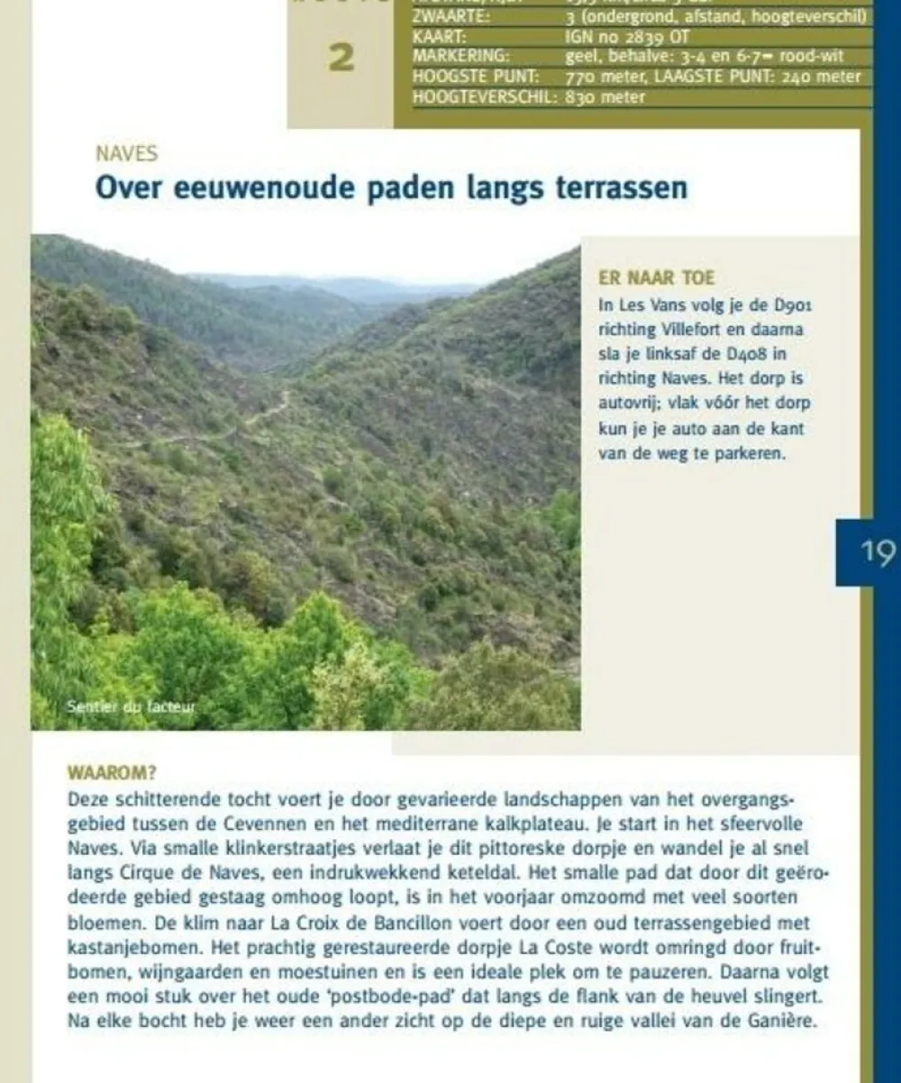 Ben je een natuurliefhebber die graag wandelt, rust zoekt maar ook af en toe wat cultuur wilt snuiven? Kies dan voor een wandelvakantie in de Ardèche en laat je verrassen door de grote diversiteit aan landschappen, de rijke flora en fauna en het mediterrane klimaat van deze boeiende regio. Ga met deze gids op pad en wandel over eeuwenoude paden door verlaten dalen en diepe kloven, waar kraakhelder water over grillig geërodeerde rotsen stroomt. Volg een van de ezel-paden die langs imposante rotswanden naar vulkanisch berglandschap voeren en laat je verrassen door prachtige uitzichten. Ontdek al wandelend het rijke historische- en religieuze erfgoed. Bezoek middeleeuwse kastelen en kloosters, slenter door verlaten gehuchtjes en laat vervlogen tijden herleven.