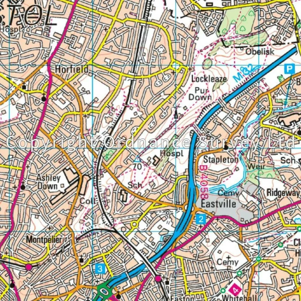 Zeer gedetailleerde, topografische wandelkaart Ordnance Survey Landranger 172 voor het gebied rond Bristol & Bath. Ligt tegen Wales aan.