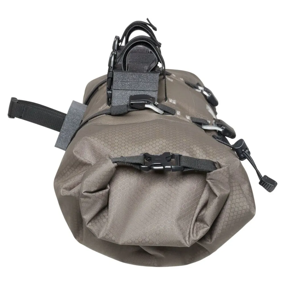 De Ortlieb Handlebar Pack S 9 L is een compacte klasse onder de Bikepacker-stuurtassen met een lengte van slechts 40 centimeter is deze waterdichte stuurtas de juiste keuze voor iedereen die met Offroad Drop Bars, race- of Cross-sturen een Bikepacking-tocht maken. Ook wat het gewicht betreft, is ook de geringe breedte als positief te beoordelen. Met negen liter volume biedt het zwenkwiel lichte, maar veel ruimte innemende bagage, zoals slaapzak en isolatiemat, voldoende plaats. De rolsluitingen aan beide zijden maken een snelle, ongecompliceerde toegang mogelijk en houden de inhoud zelf bij felle regen betrouwbaar droog.